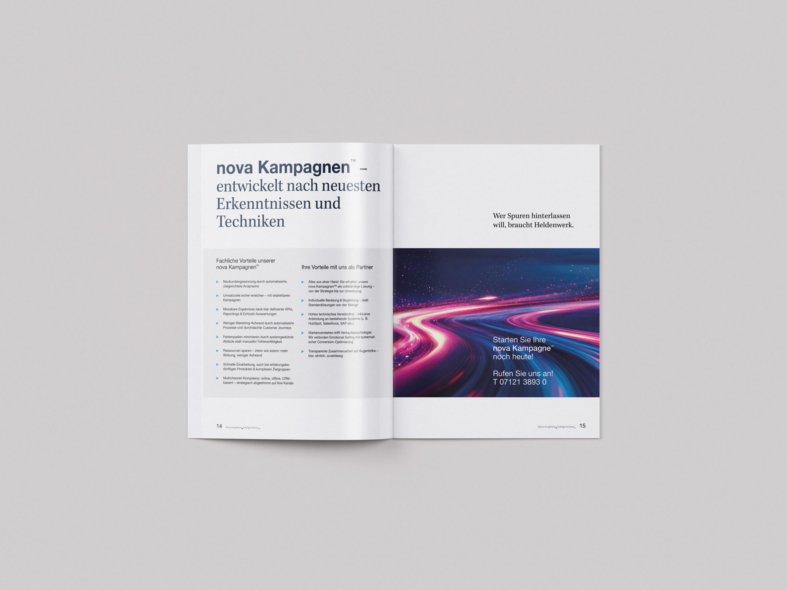 Konzeption und Gestaltung einer Image-/Produktbroschüre zur Positionierung von nova Kampagnen™ als zentralem Leistungsangebot von novahelden.